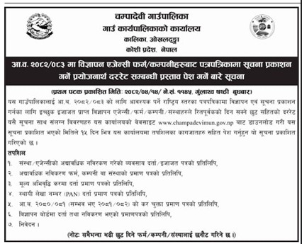 पत्रपत्रिकामा सुचना प्रकाशन गर्ने दररेट सम्बन्धी प्रस्ताव पेश गर्ने बारे सुचना