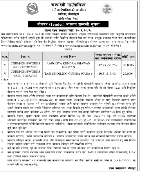 बोलपत्र आव्हान सम्बन्धी सुचना