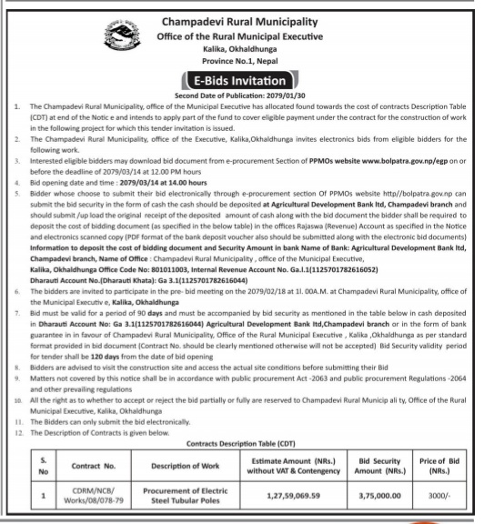 बोलपत्र आह्वान सम्बन्धि सुचना